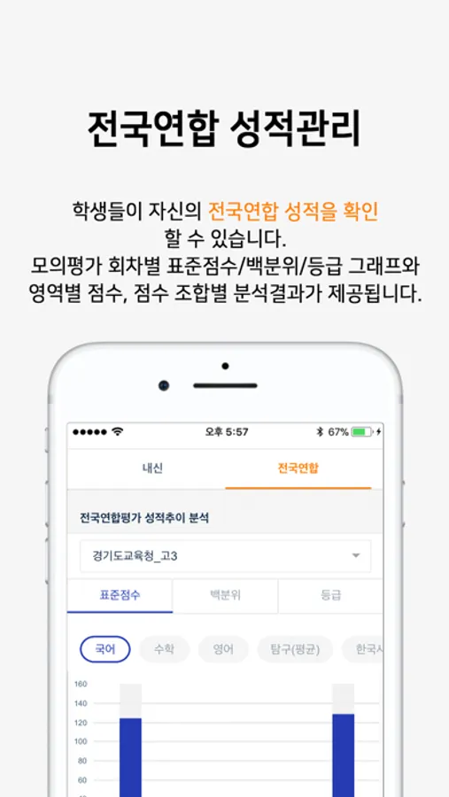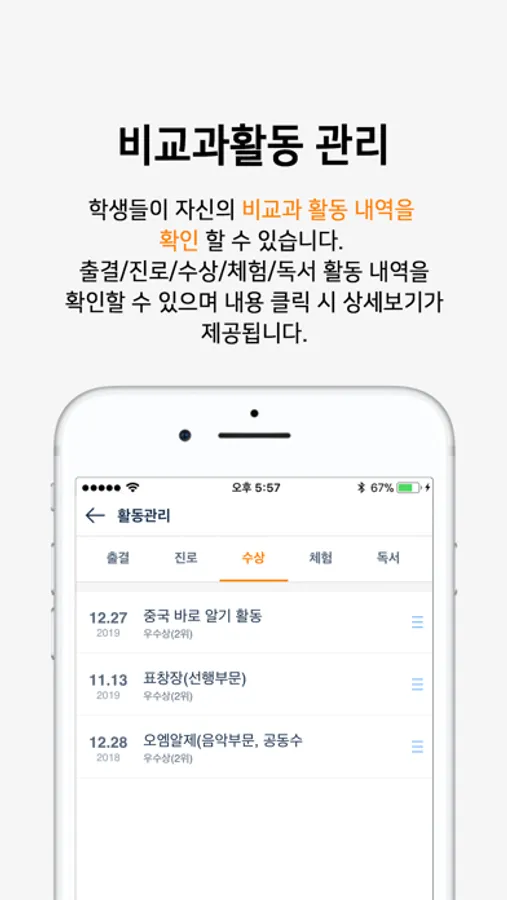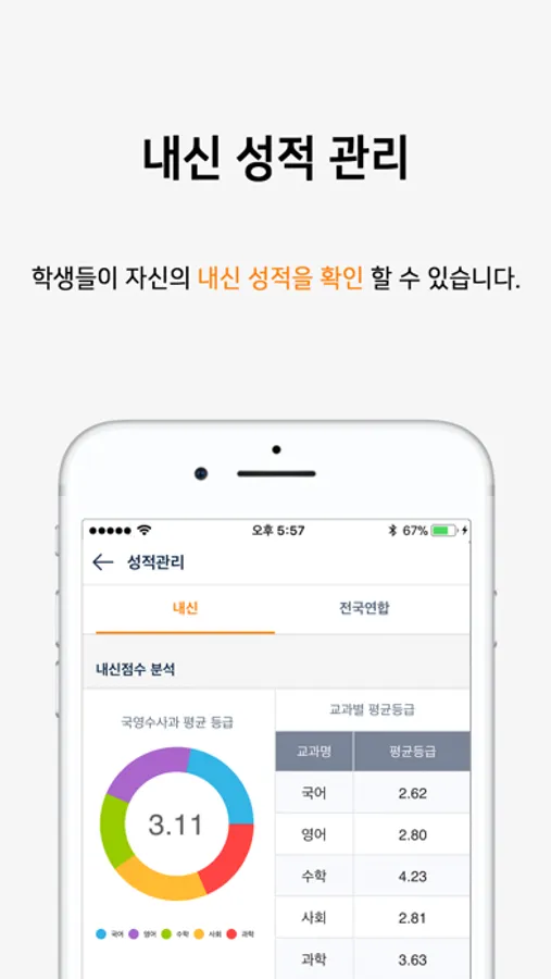 - 개인데이터 불러오기로 선생님께 데이터를 전송받아 학생의 전학년 평균등급 및 교과·비교과 자료를 모바일 앱으로 확인
