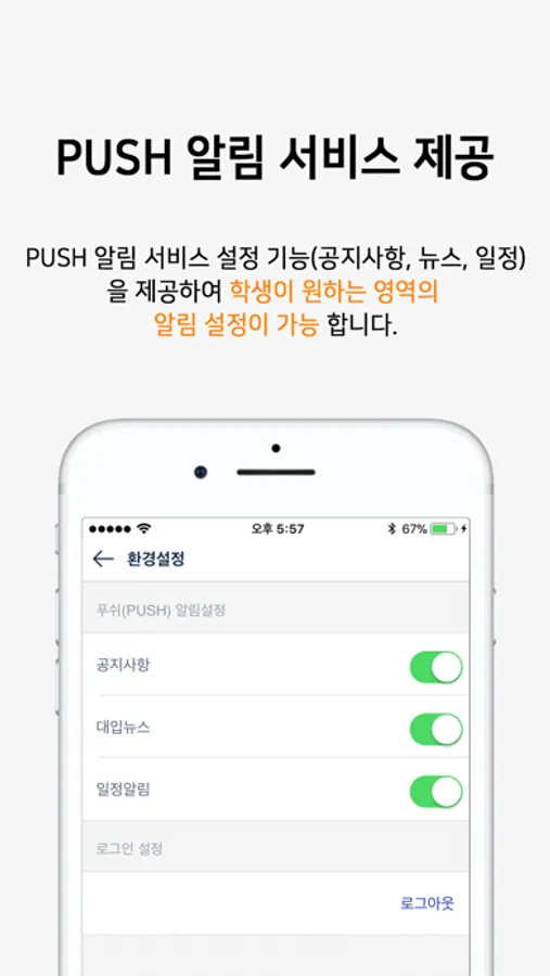 - 시험, 일정 등을 PUSH 메시지로 알려주고, 알림 주기, 반복 등을 설정