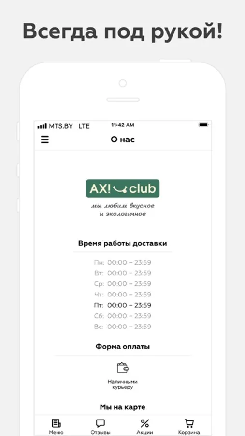 АХ! club - это удобный и выгодный сервис совместных покупок продуктов питания. Члены клуба - жители Елабуги, которые питаются осознанно, качественными продуктами и хотят покупать их за адекватную цену. Прежде чем заявить в приложении о продукте, мы дегустируем его и проверяем его соответствие уровню по целому ряду параметров. Члены клуба экономят дважды: на оптовой схеме закупки хороших продуктов и на доставке. Пункты самовывоза удобно расположены по городу.