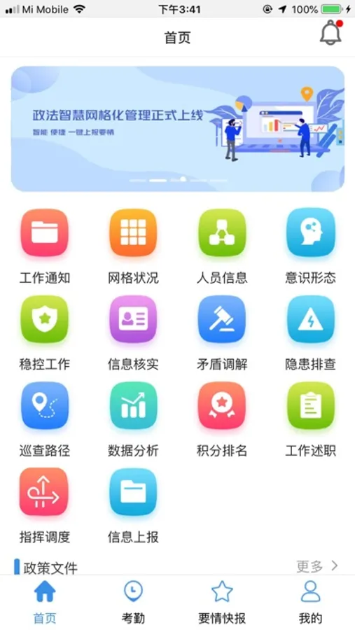 智慧网格化管理,结合网格员日常管理工作实际,对网格员日常考勤签到、政策宣传与意识形态、重点人员稳控、信息核实、矛盾调解、安全隐患排查、网格巡查、工作简要述职8项具体工作内容和任务按照积分进行排名考核,实现网格员管理目的。