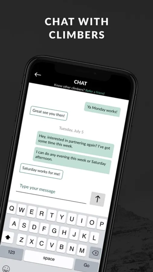 Communication is key to climbers. Stay in touch with your new friends using our chat system. Figuring out details? Let everyone know what you are thinking! Have a plan? Invite the crew!