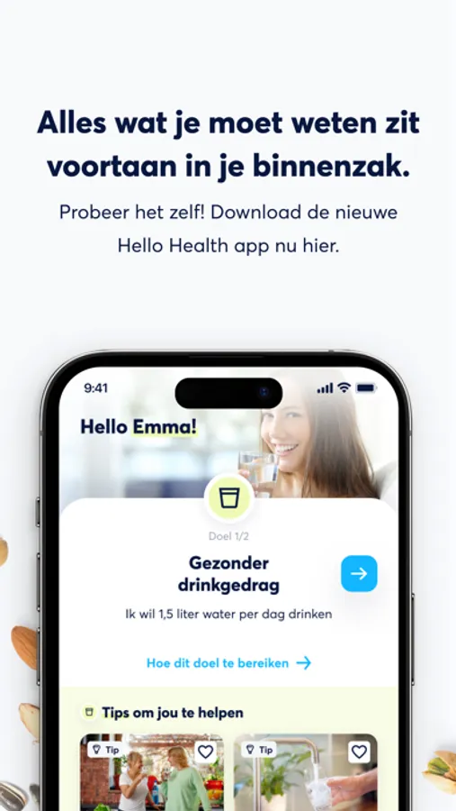 Met onze Hello Health app powered by Colruyt Group zitten je nieuwe gezonde gewoontes voortaan in je binnenzak.