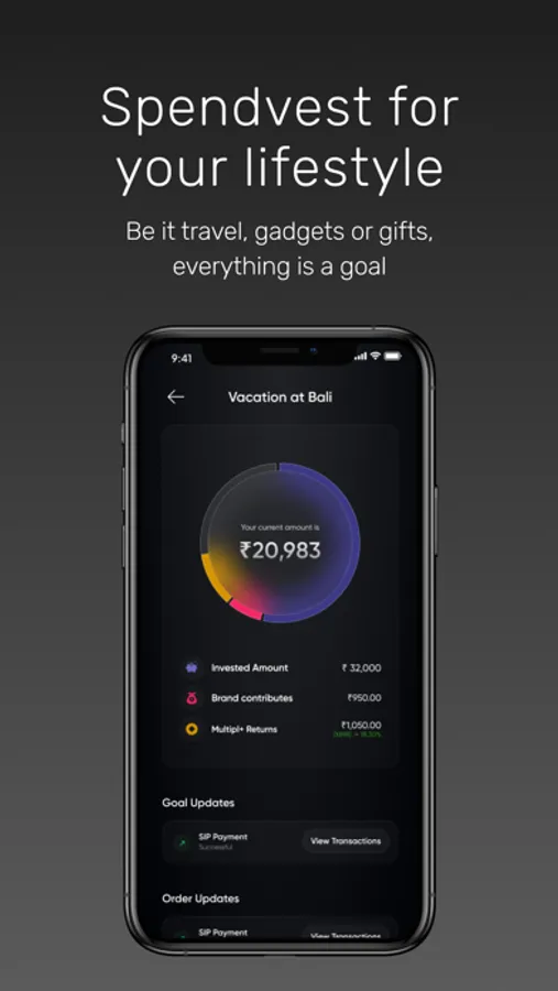 When you invest for a goal, and select a relevant brand (from our list of 70+ brand partners) to later make the purchase with, that brand adds to your savings every month in the form of brand co-investments.