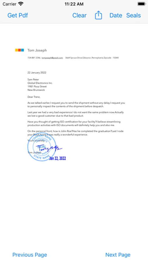 The user can stamp the Company seal, the Signature seal and the Date seal on pdf and save it.