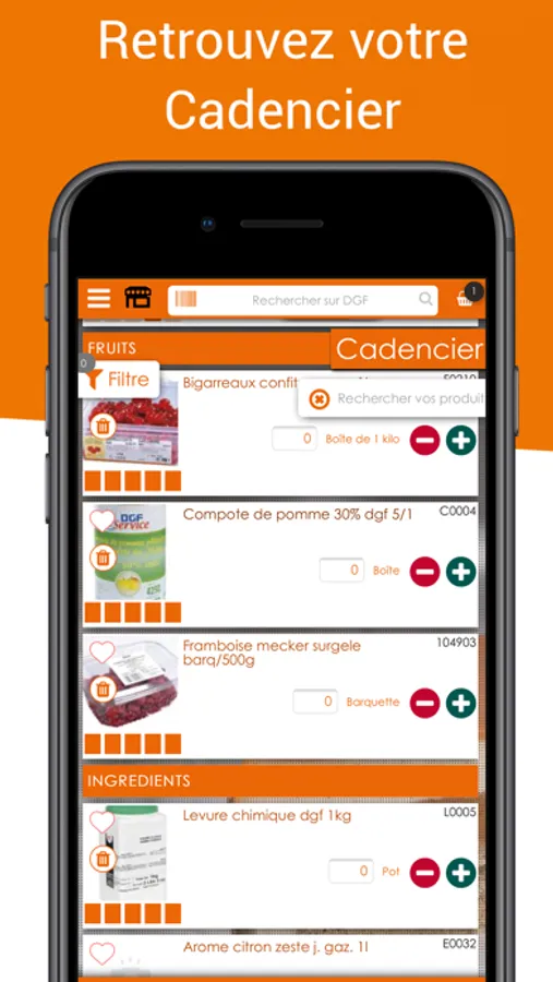 L’application vous propose de gérer des listes d’achat de favoris, afin de préparer votre panier. Créez autant de listes personnalisées que vous le souhaitez pour préparer vos commandes. Gérez vos listes, planifiez des alertes, afin de recevoir des notifications pour vous rappeler de passer commande.