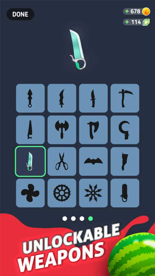 - 30+ 3D knifes or blades are ready to cut the fruits.