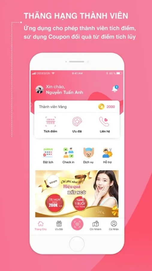 Thăng hạng thành viên, tích lũy điểm thưởng và quy đổi điểm để nhận những ưu đãi đặc biệt từ chuỗi SPA như giảm giá sản phẩm, dịch vụ, nhận quà tại cửa hàng.