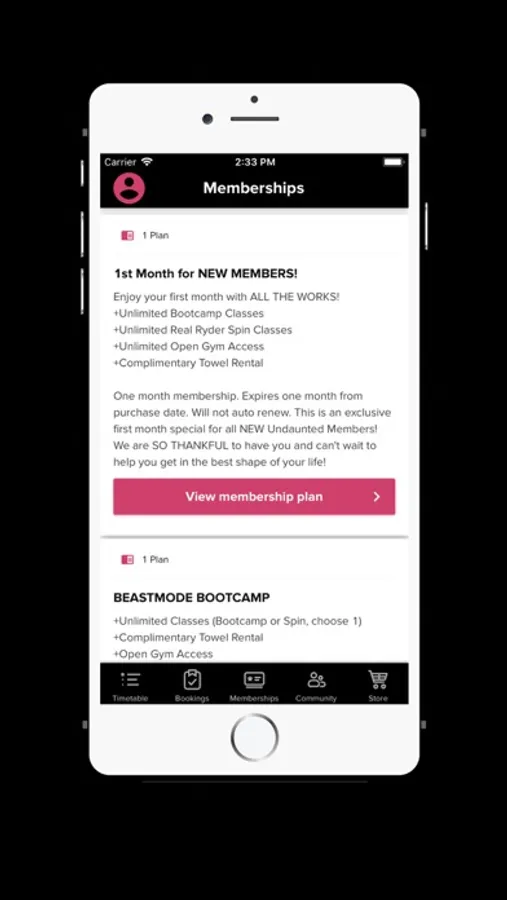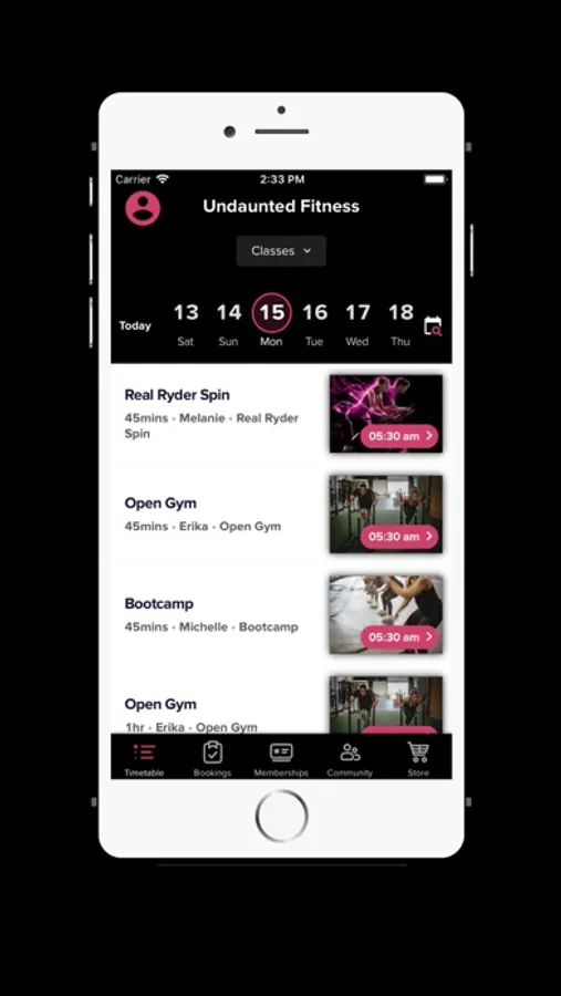 Download the Undaunted Fitness app to easily book classes and manage your fitness experience - anytime, anywhere. Make a reservation, get added to a wait list, purchase class packages, check your profile and membership status, keep up to date with the latest products and services, and more – all from your device.