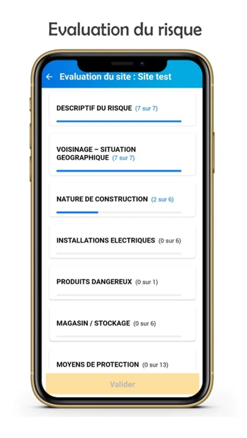 Les réponses que vous porterez et validerez sont rapides de type oui/non ou de saisie d’informations simples sur votre entreprise et ses activités. Des photos d'illustration de même que des réponses sont pour certaines questions exigées.