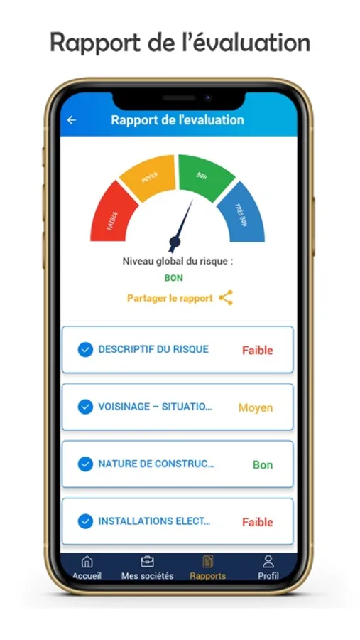 En retour, vous disposerez pour votre entreprise d'une évaluation sous forme d'un rapport synthétique sur les aspects de maîtrise des risques Incendie/Explosion. Les informations que vous y trouverez sont en mesure de vous permettre de vous améliorer et d'optimiser vos actions et vos dépenses dans ce domaine.