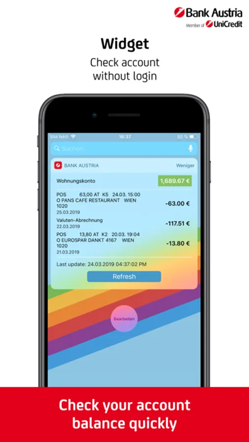 • Fast overview at a glance. Check your balance and latest transactions via Widget in the Homescreen.