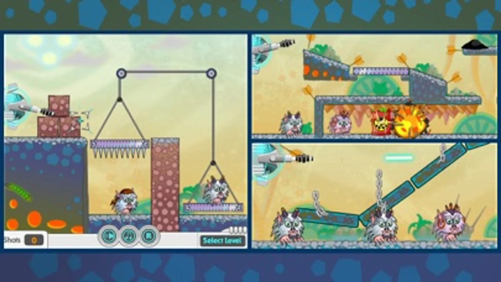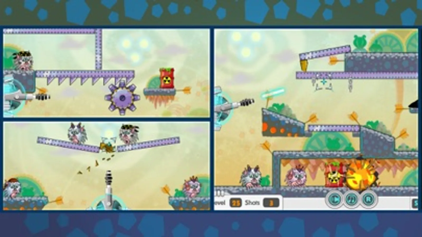 In this exciting tactical puzzle, you need to use a laser gun to destroy all the monsters! But the monsters are cunning and hid from your retaliation. Be smart to get to them - use a dynamic destructible environment, move objects, and shoot ricochet.