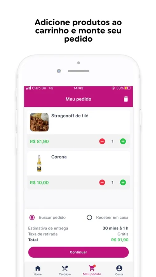 No app, você encontra de forma rápida o cardápio completo e ainda pode utilizar a ferramenta de busca para localizar diretamente os produtos que você deseja.