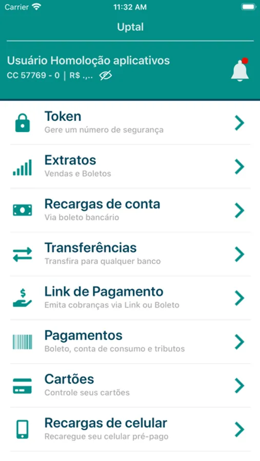 Nele você controla todo o seu financeiro, realiza transações bancárias, pagamentos, transferências, confere seu saldo, recarrega seu celular e muitas outras perações em um só click.