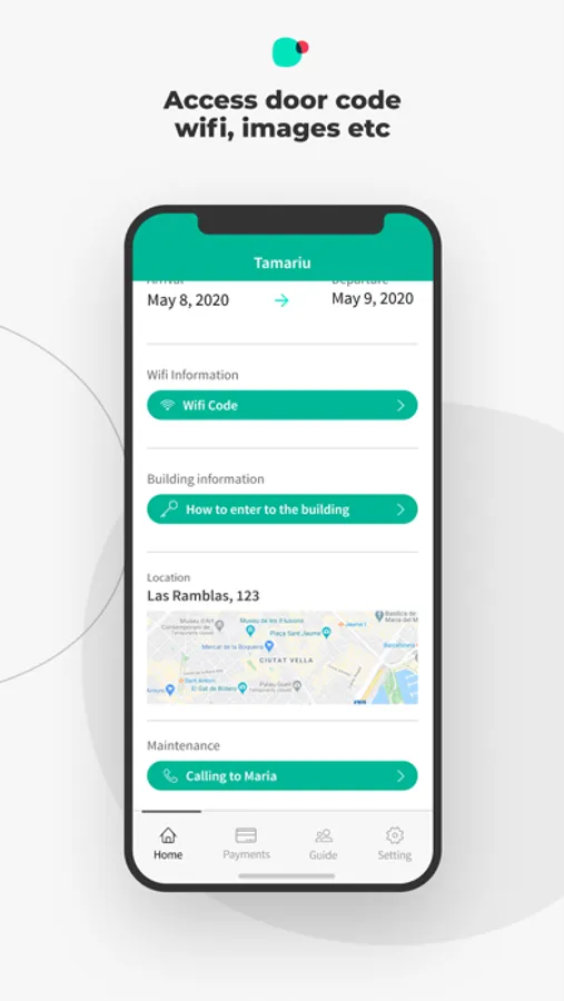 Forget about printing dozens of papers and checking old email chains looking for relevant documents: any important information for your stay will be already in the app. That includes check-in information, payment receipts and rental agreements.