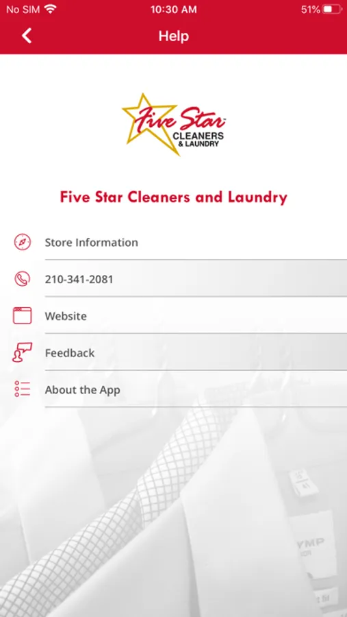 The Five Star Cleaners & Laundry App provides instant access to your personal Five Star Cleaners