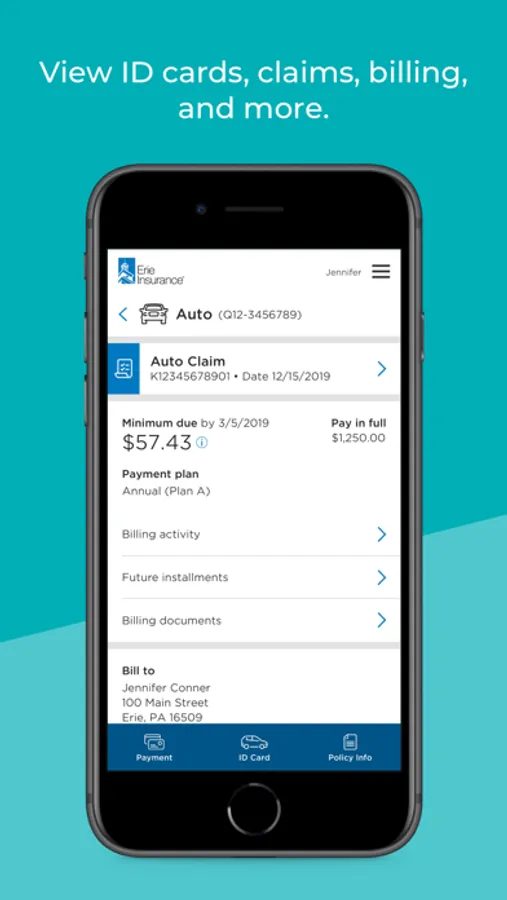 At ERIE, we’ve been Above All in Service since 1925. You can count on us to provide auto, home, life, and business insurance you trust. With ERIE’s mobile app, ERIE customers with an Online Account can easily and securely access important policy information from your mobile device. Here’s what you can expect from our app.