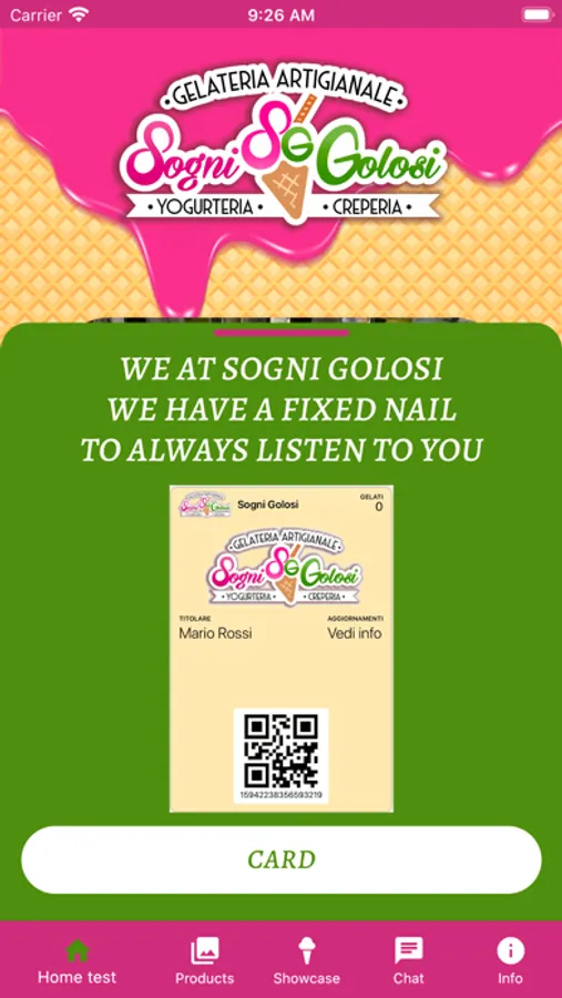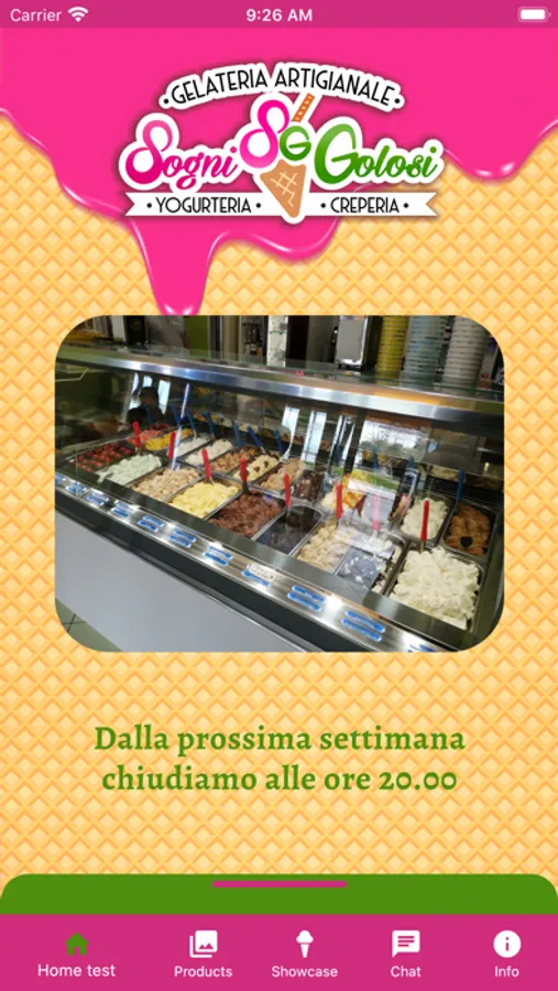 Rimani in contatto con la gelateria Sogni Golosi.I nostri gelati sono naturali al 100%, senza aggiunta di grassi idrogenati o esaltatori di sapori. Utilizziamo frutta fresca e prodotti di altissima qualità. Ecco perchè sono digeribili. la maggior parte dei nostri prodotti è senza glutine. Consulta la vetrina con tutti i nostri gusti, scorri le immagini dei nostri prodotti e inviaci uno scatto con i nostri gelati.Creati una tessera punti della nostra gelateria e se hai bisogno inviaci un messaggio tramite la nostra chat, risponderemo al più presto.