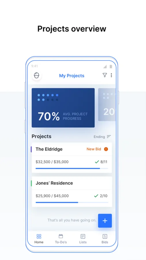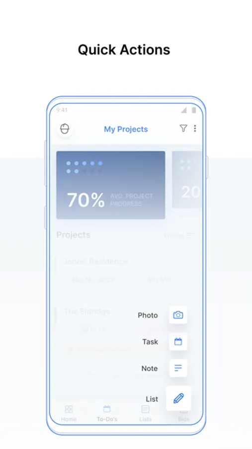 The Build simplifies the process of purchasing building material and integrates the process with easy to use project management tools. The Build allows contractors to view all their company activities at their finger tips thereby helping them to stay on schedule and within budget. Contractors can create material Lists and receive competitive bids, automatically integrate receipts into their Budgets, create and assign Tasks to Crew members, Manage and create budgets, track Projects and manage To Do's , manage project related Notes,