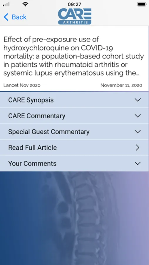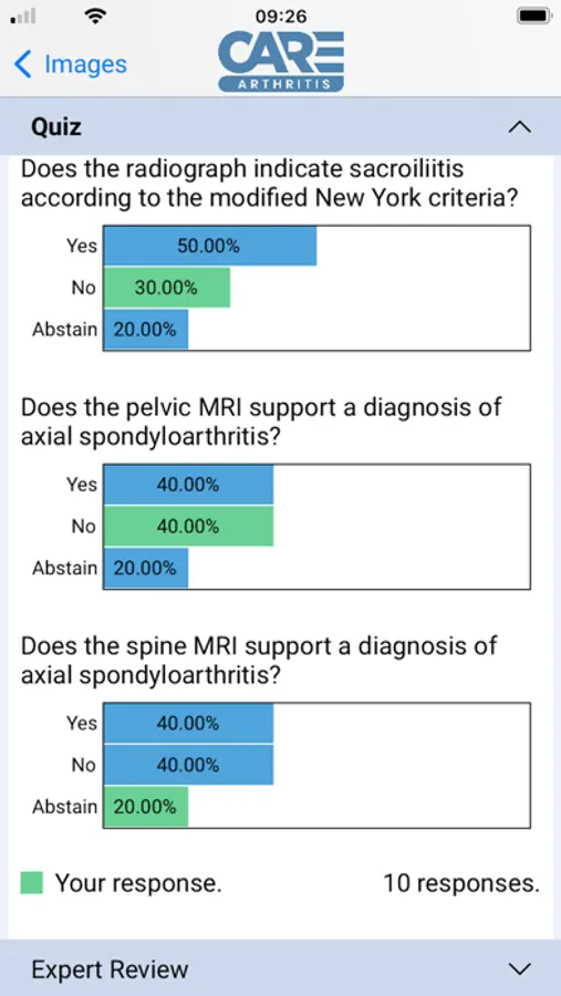A mobile app for Rheumatologists for the dissemination of imaging educational content and high-impact rheumatology news. The app provides regular new case-based imaging content with learning points from our own experts as well as from key opinion leaders around the world. Recent publications are also accessible with added commentary from our team and others. All content allows for community engagement from app users.