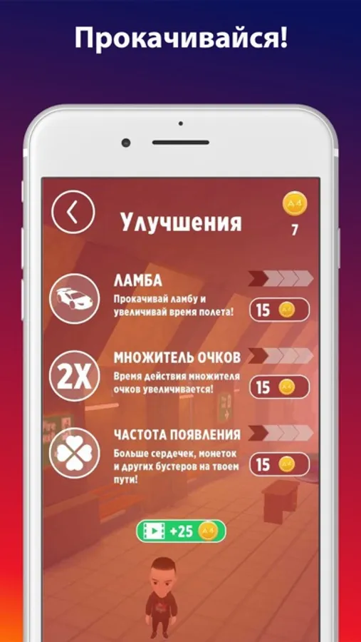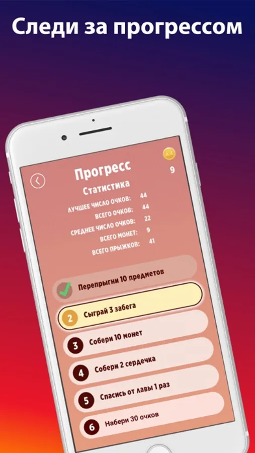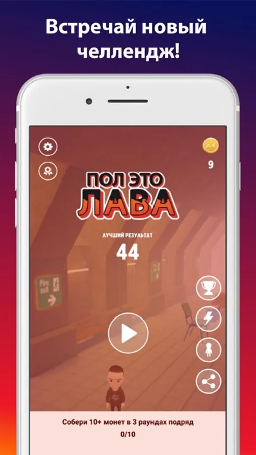 А чтобы спасаться от лавы было еще интереснее, в игре тебя ждут челленджи. Например, собрать 3 сердечка, полетать 2 раза на ламбе или заработать минимум 100 очков. За каждый выполненный челлендж ты будешь получать вознаграждение;)