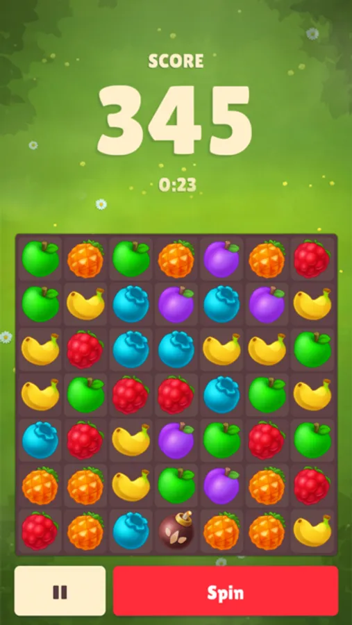 A classic match-3 game with unique mechanics. Experience endless fun with the randomly asserted generator which guarantees that you shall never see the same map twice in your life. Unique gameplay based on time management and quick thinking brings freshness to an everlasting classic gameplay. Combine fruits in order to get incredible map-clearing boosters and increase the time limit!