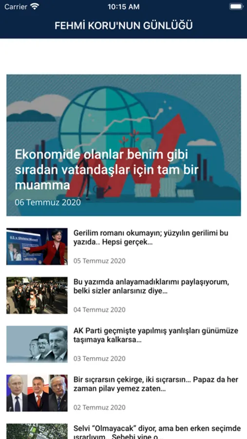 Fehmi Koru Türkiye'de ve dünyada meydana gelen gelişmeleri yakından takip ediyor. Kendi bilgi dağarcığından, gözlemlerinden ve gelişmeleri etkileyen kişilerle görüşmelerinden haraketle gelişmeleri değerlendiriyor. Yazılarında siyasi konulara ağırlık vermekle birlikte tarihe, ekonomiye, uluslararası ilişkilere ve güncel sanatlara da yer veriliyor. Fehmi Koru'nun Günlüğü bir yorumcunun güncele ilişkin değinileridir.