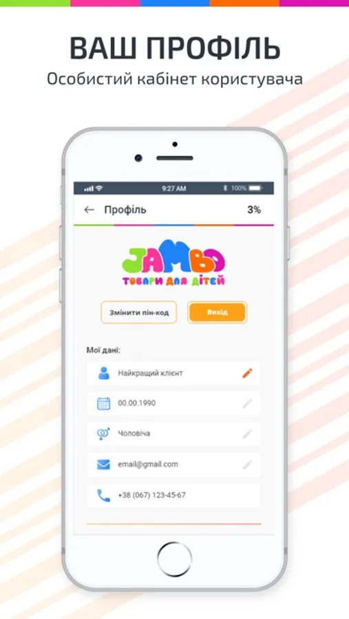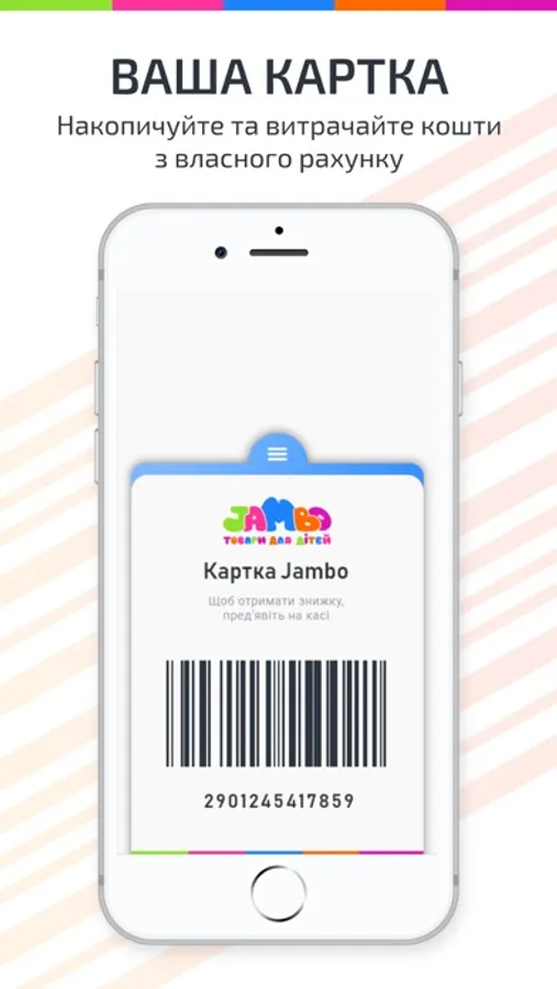 Програма лояльності для клієнтів "Jambo". Замініть пластикову карту на зручний додаток в вашому смартфоні, який дозволяє стежити за новинами компанії, купувати та ділитись сертифікатами на покупки, залишати відгуки, ділитись посиланням на додаток з друзями та накопичувати бонуси за їх покупки, стежити за локацією торгових об’єктів компанії, товарним асортиментом.