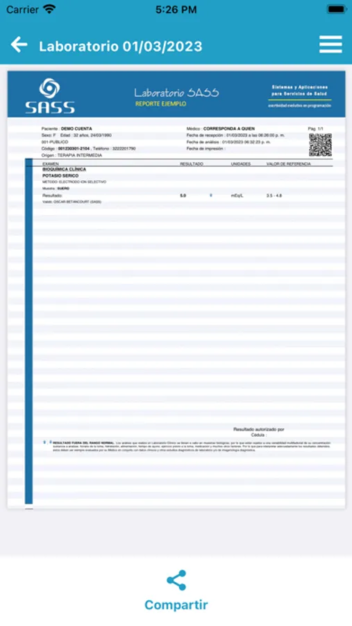 SASS Resultados es una aplicación dirigida a pacientes que esperan resultados de Laboratorio de clientes que tengan el sistema SASS, Sistemas Administrativos para el Sector Salud.