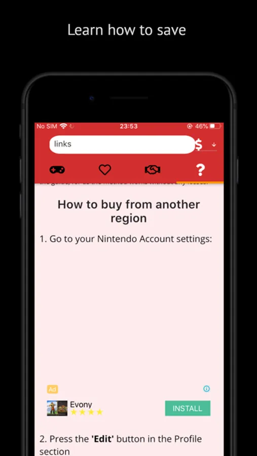 It acts as a price checker and allows you to compare the cheapest price to the other prices at the rest of the eShops, and see how much you save.