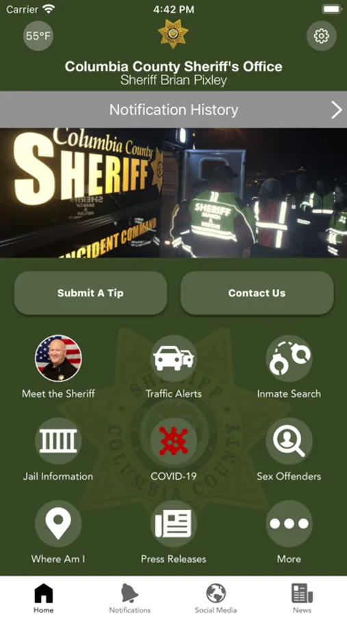 The Columbia County Sheriff’s Office mobile application is an interactive app developed to help improve communication with area residents. The Columbia County Sheriff App allows residents to connect with the Columbia County Sheriff’s Office by reporting crimes, submitting tips, and other interactive features, as well as providing the community the latest public safety news and information.