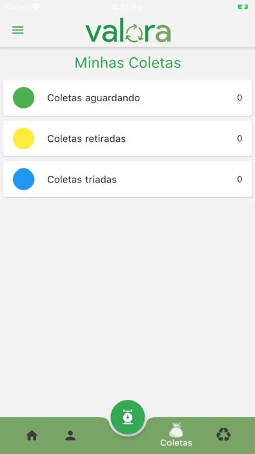Aplicativo do usuário para controle de coleta de recicláveis e acompanhamento do destino de seus resíduos e aproveitamentos.