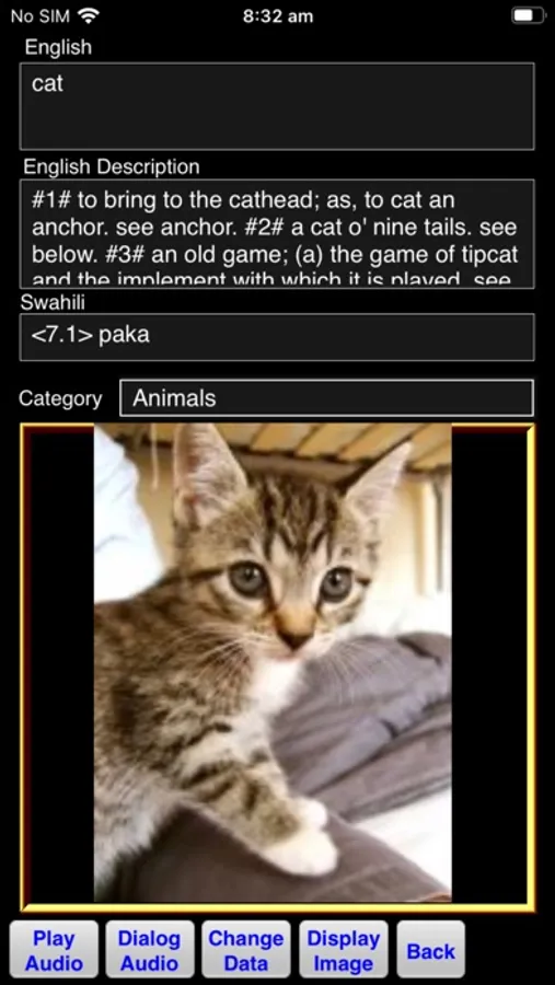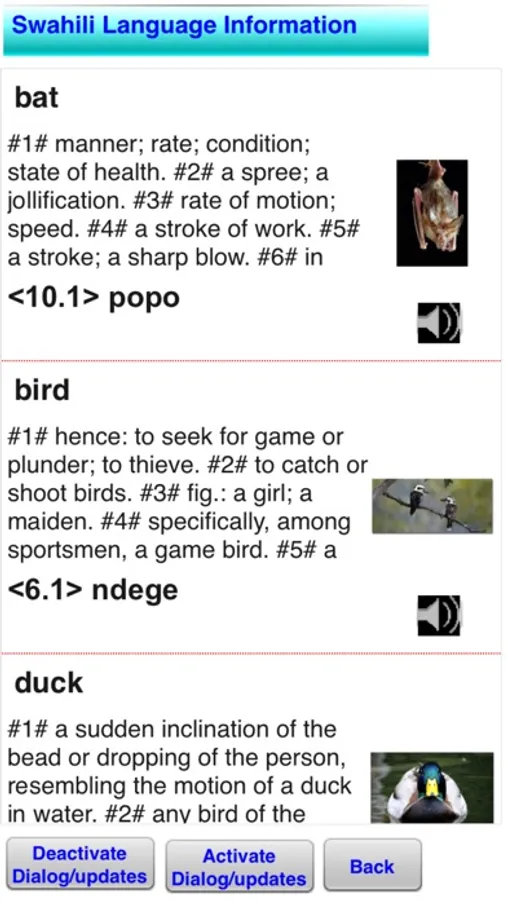 Dialog audio data helps to elaborate on the translated Swahili data and may be used to teach the user what to expect in reply to what they are saying to local speakers of the language.