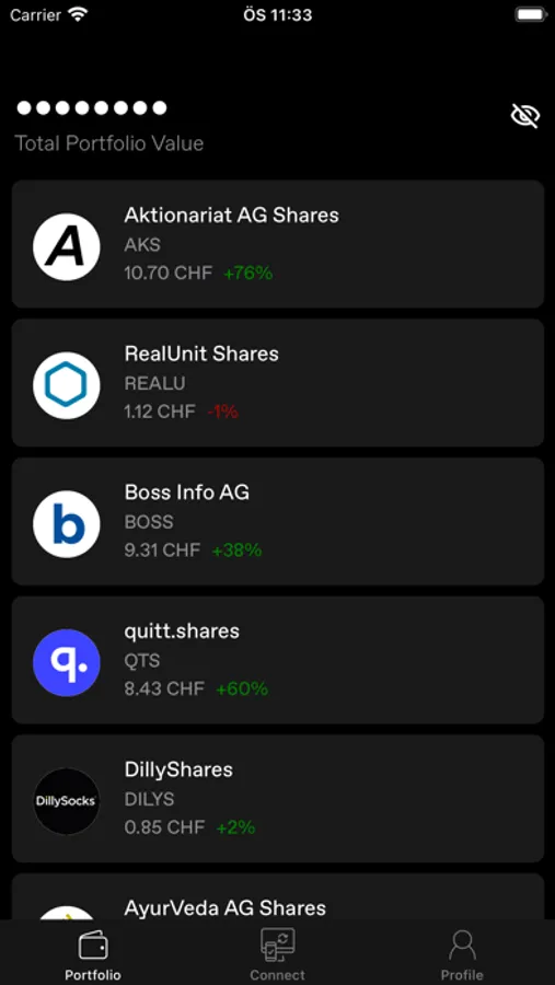 The Aktionariat Portfolio app lets you see and manage your tokenized share portfolio.