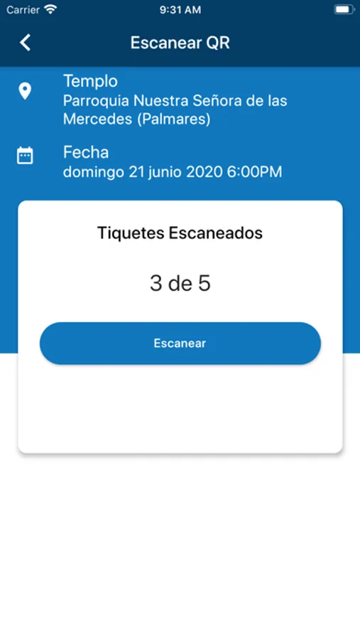 Aplicación para registro de Eucaristía , visualización de códigos de ingreso y escáner para códigos.