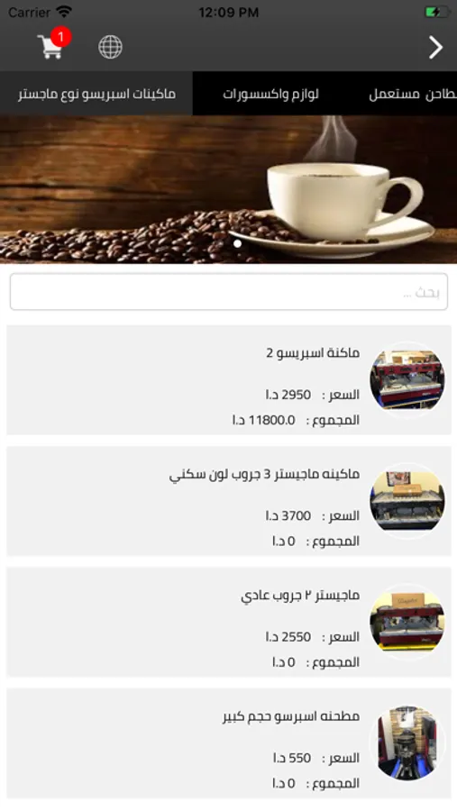 كماكنات الاسبرسو المنزلیة والصناعیة المستخدمة في الفنادق والشركات والمكاتب والمقاھي والمطاعم مع توفر قسم خاص