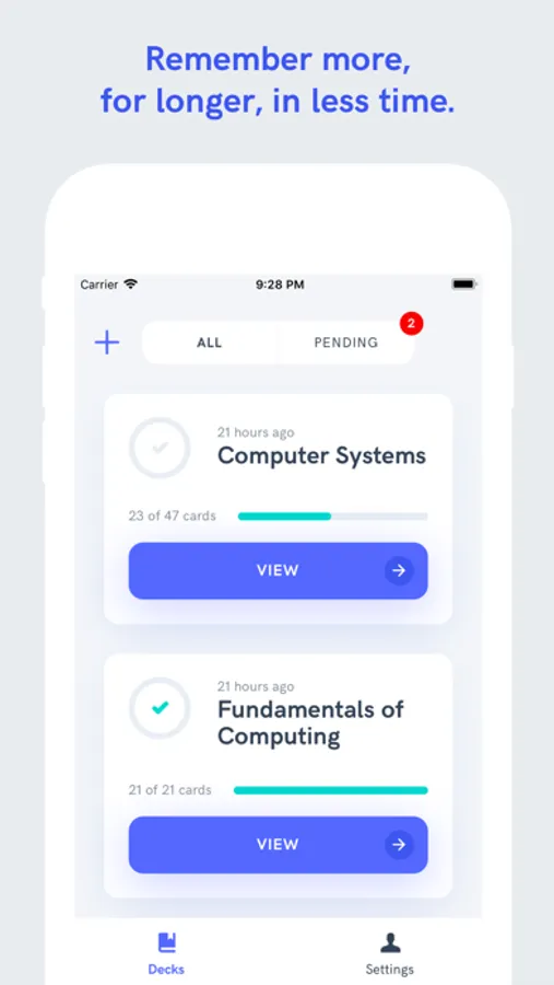 The scientifically proven algorithm behind Spaced Repetition will enhance your information retention for longer, in a very fast and convenient way.