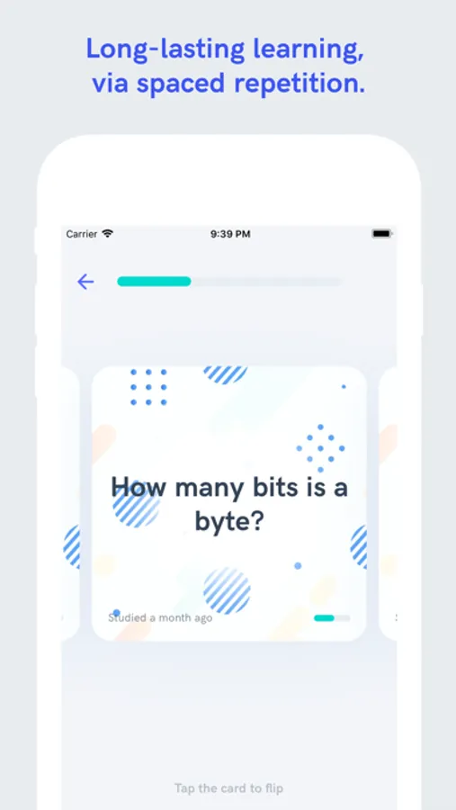 A smart algorithm takes care of showing you the relevant cards at the right time for efficiency.