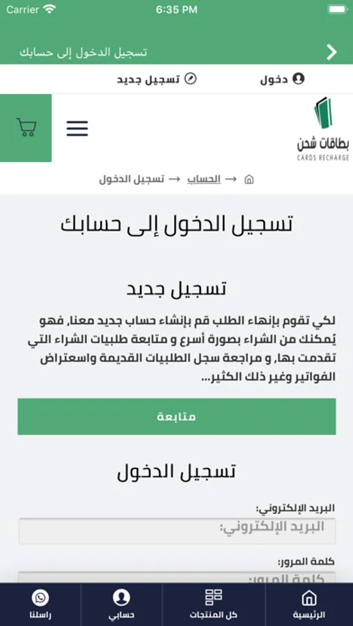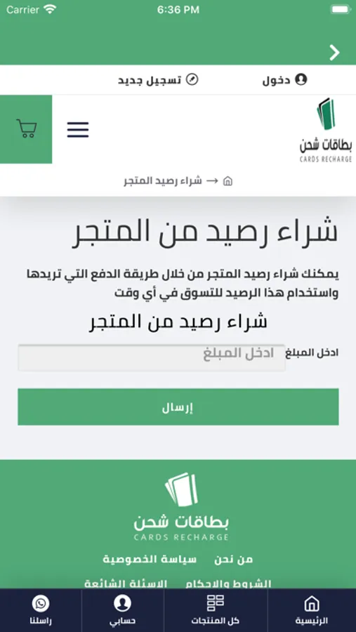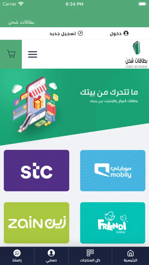 تطبيق بطاقات شحن ، هو تطبيق مختص ببيع بطاقات شحن الاتصالات والانترنت والشرائح واجهزه الراوترات حيث يمكن الشراء منه على مدار الساعه دون الحاجه للخروج من بيتك ويمكنك من الحصول على افضل الاسعار والعروض اليوميه