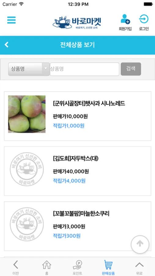 경상북도농식품유통교육진흥원의 바로마켓사업의 공식 멤버십 서비스 앱 입니다.