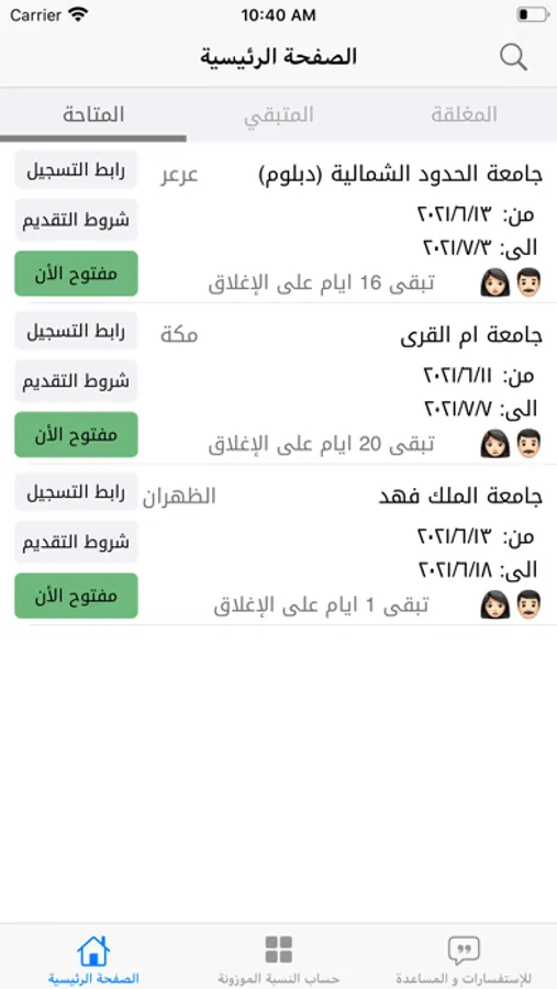 تطبيق مواعيد الجامعات لعرض جميع تواريخ فتح و إغلاق باب التسجيل و القبول في الجامعات في السعودية.