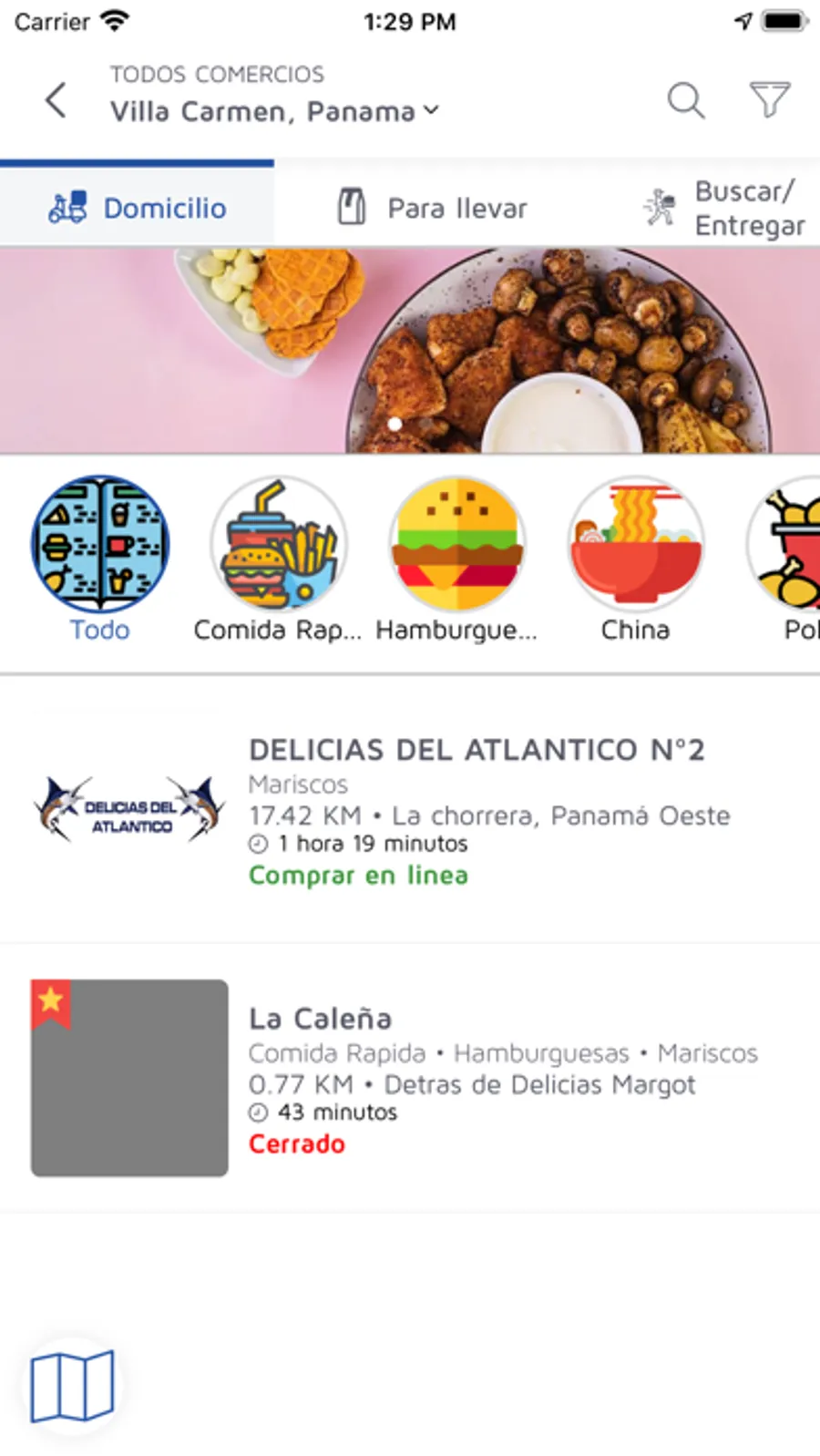 comida italiana, mexicana, china, pizza, McDonald, KFC, WingZone, Sushi, nacionales todas estan en nuestro MarketPlace, si no esta, lo conseguimos.