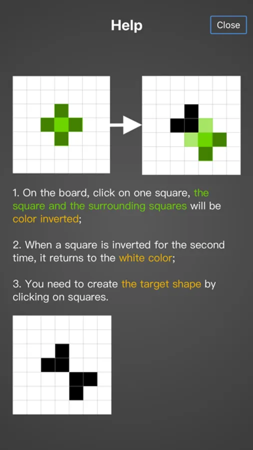 1. On the board, click on one square, the square and the surrounding squares will be color inverted;