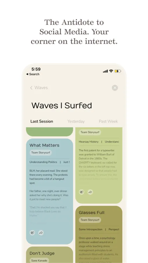 A snack and gymnasium for the mind, Storysurf is the most productive way to waste your time with stories that know and go with your moods.
