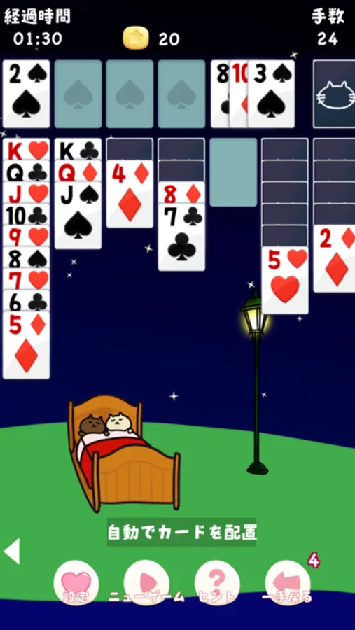 ・今動かせるカードがわかる<ヒント>機能つき
