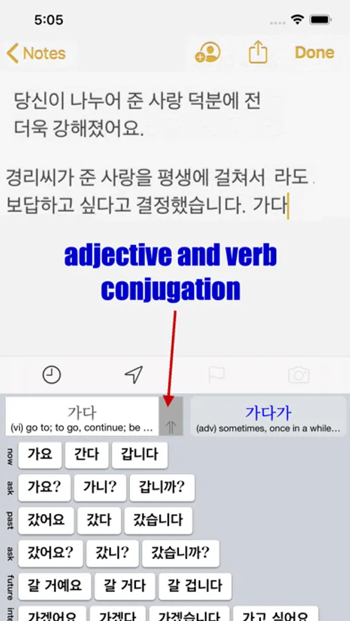 No need to switch to another app or web service in the middle of a chat or email reply to check out the next word. This keyboard will increase your Korean typing speed and prevent embarrassing mistakes.