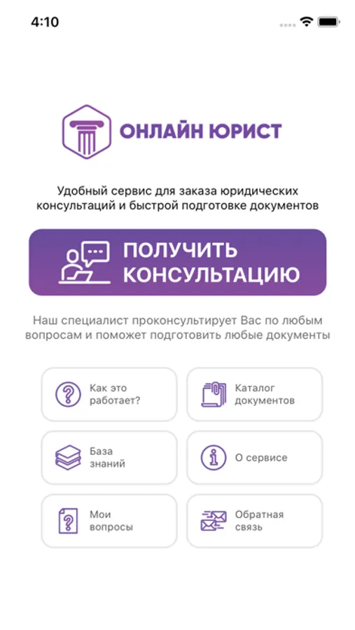 Сервис "Онлайн юрист" предоставляет возможность получить юридическую консультацию по любым вопросам, а также возможность заказать разработку юридических документов.