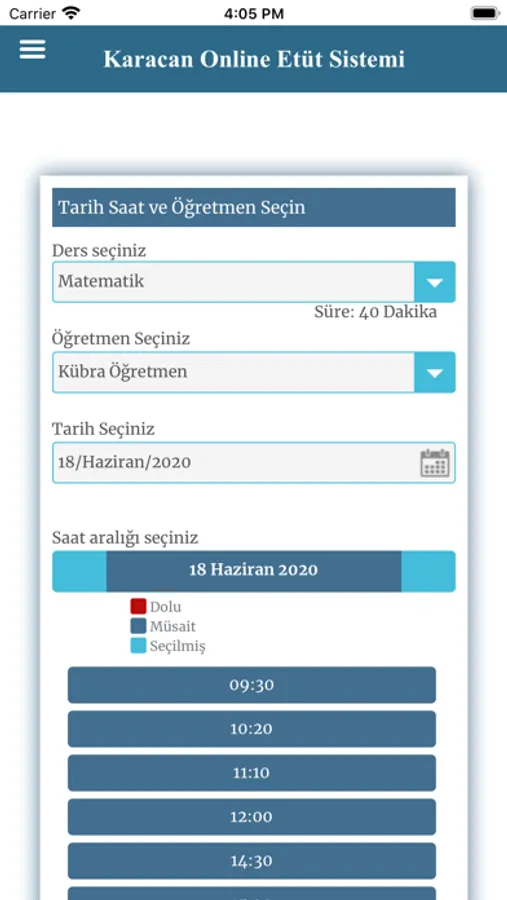 Karacan Akademi öğrencilerinin, birebir özel ders randevusu alabilmeleri için geliştirilen online etüt uygulaması.