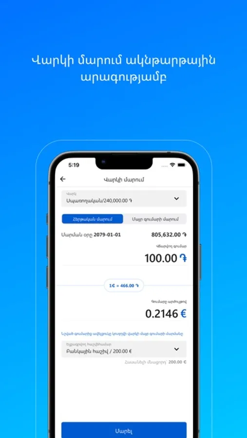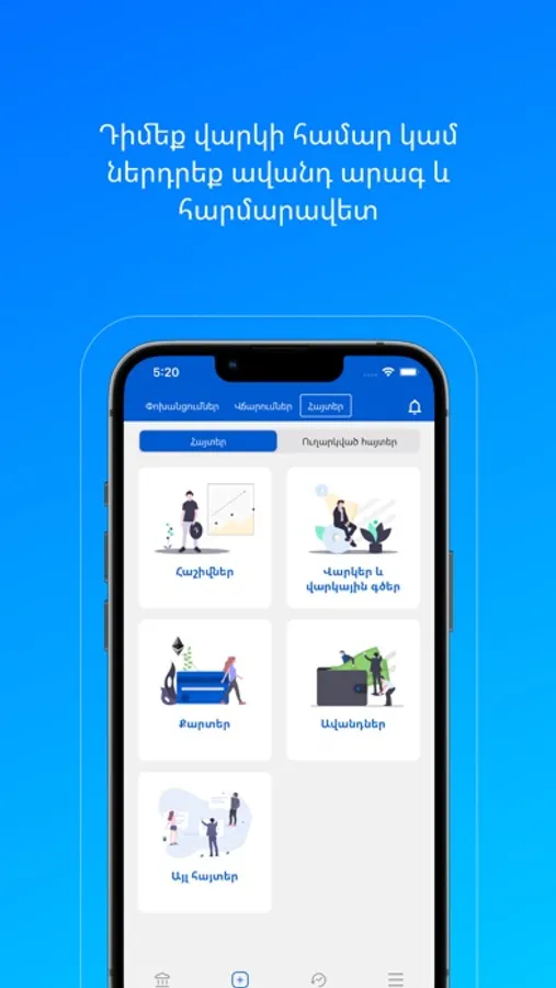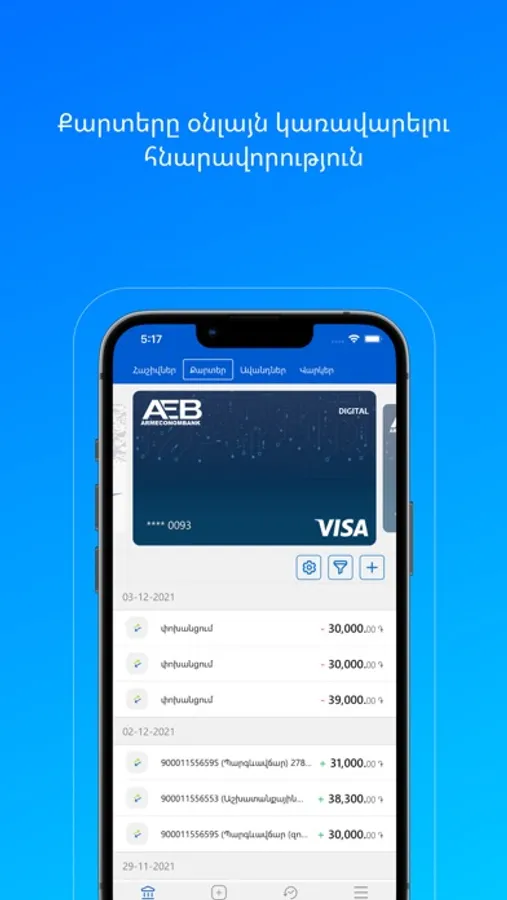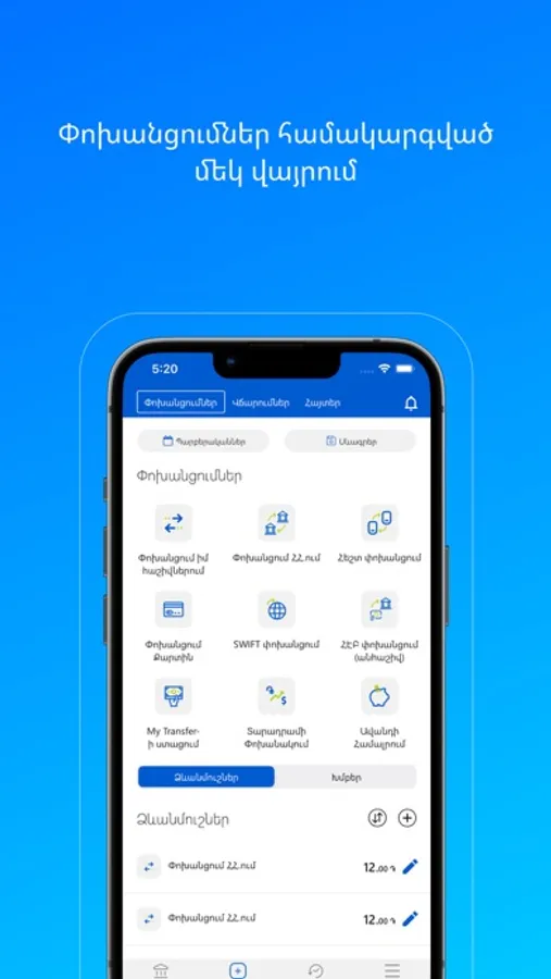 Armeconombank’s mobile application allows to manage accounts without visiting the bank.