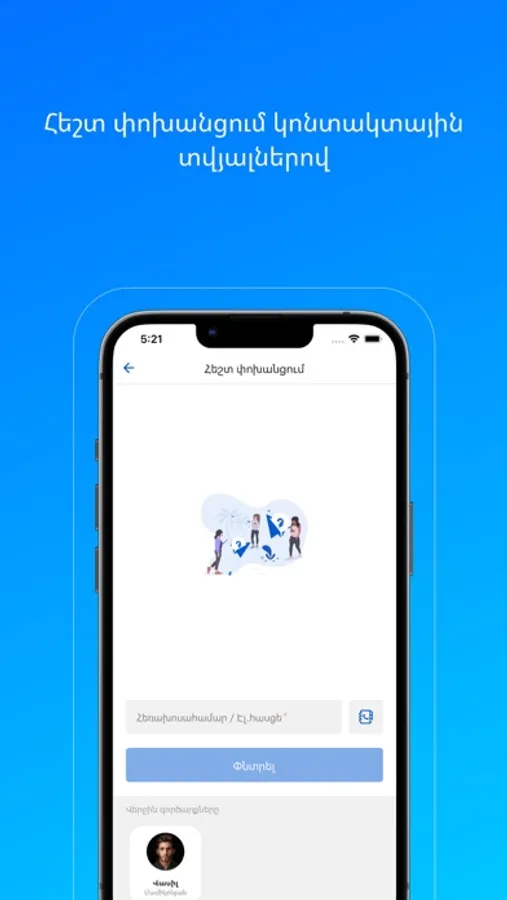 If you are AEB mobile bank’s user, you can simply enter the recipient's phone number or email address and make "Easy transfer" between Armeconombank's accounts without any fee.